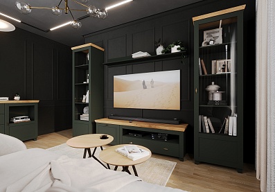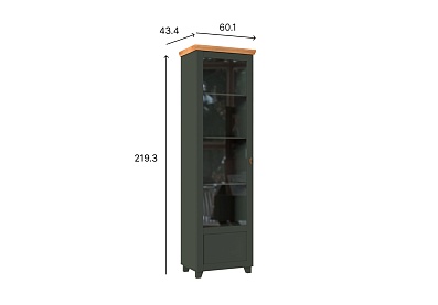 Шкаф Чарли с витриной (правый, со шпонированными полками) Шафран