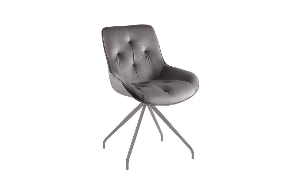 Стул-кресло Сохо с поворотным механизмом прекрасно впишется в любой интерьер и комнату. Такой стул можно использовать как в качестве обеденного стула, так и в виде рабочего кресла к письменному столу. Обивка из велюра в актуальном сером оттенке прекрасно гармонирует с металлическими ножками серого цвета. Такие стулья украсят современные интерьеры, а также пространства в стиле эклектики.