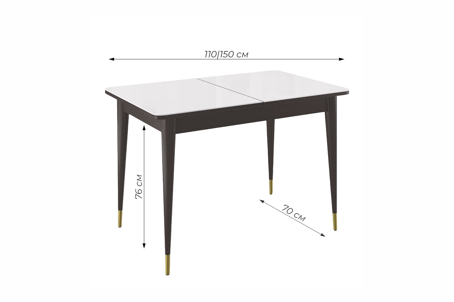 Стол обеденный Мане прямоугольный раздвижной К1100 опоры цвета венге с металлическими наконечниками, столешница - стекло белое глянец.