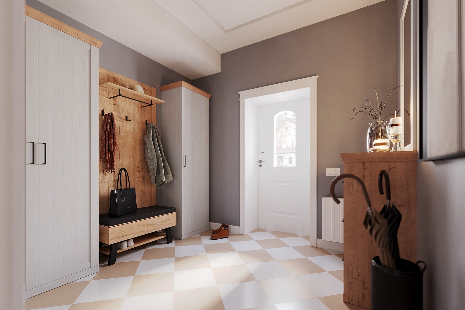 – описание: цвет дуб бунратти, блан шене, стиль современный, минимализм, назначение для прихожей.