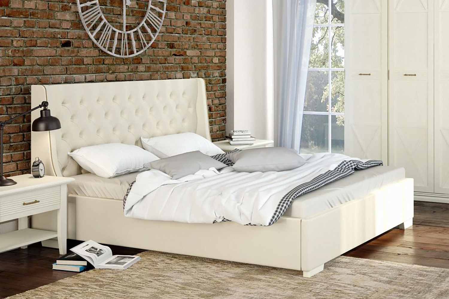– описание: назначение для спальни, размер спального места 160 х 200 см, стиль английский, кантри, неоклассика, материал обивки экокожа.